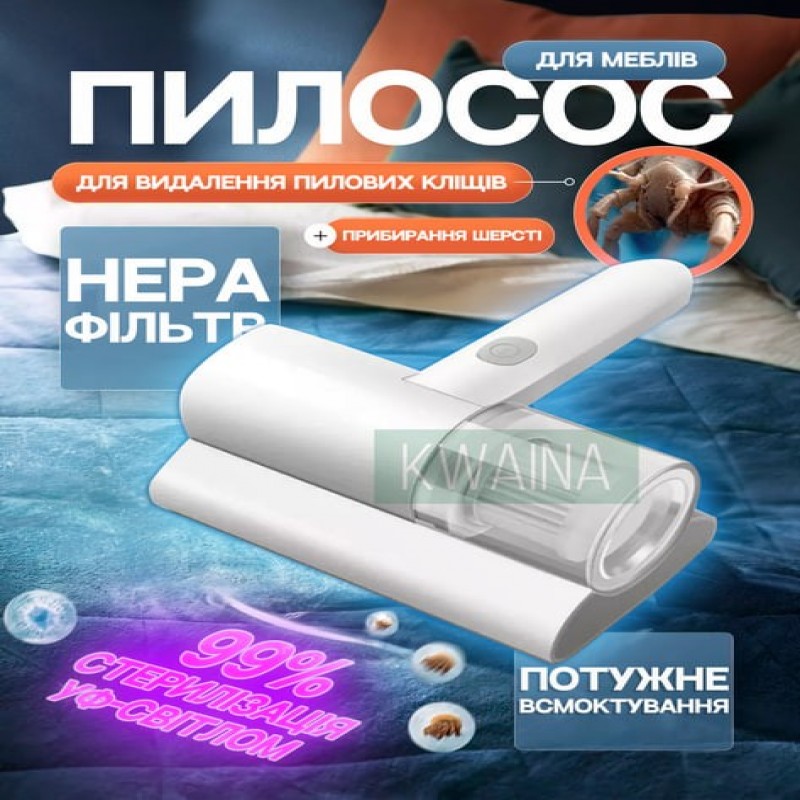 Пилосос портативний бездротовий з УФ стерилізацією для видалення пилових кліщів та очищення матраців